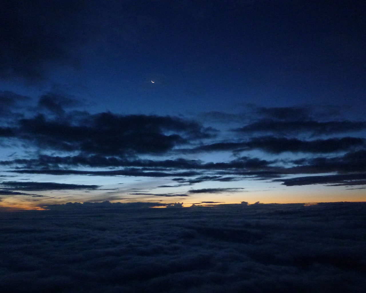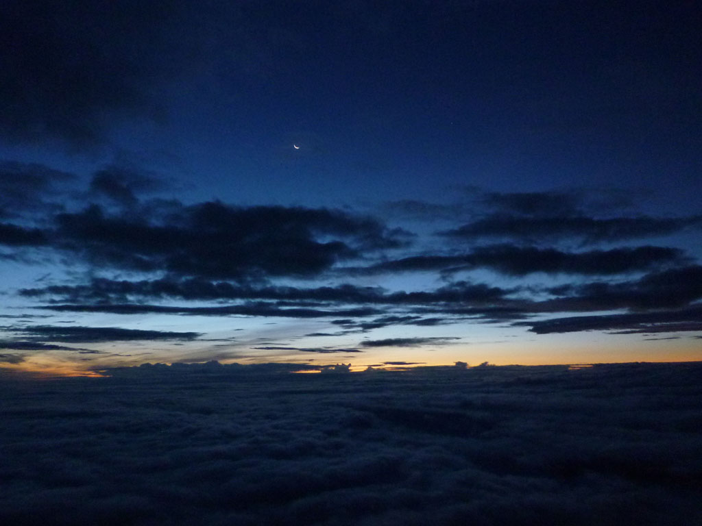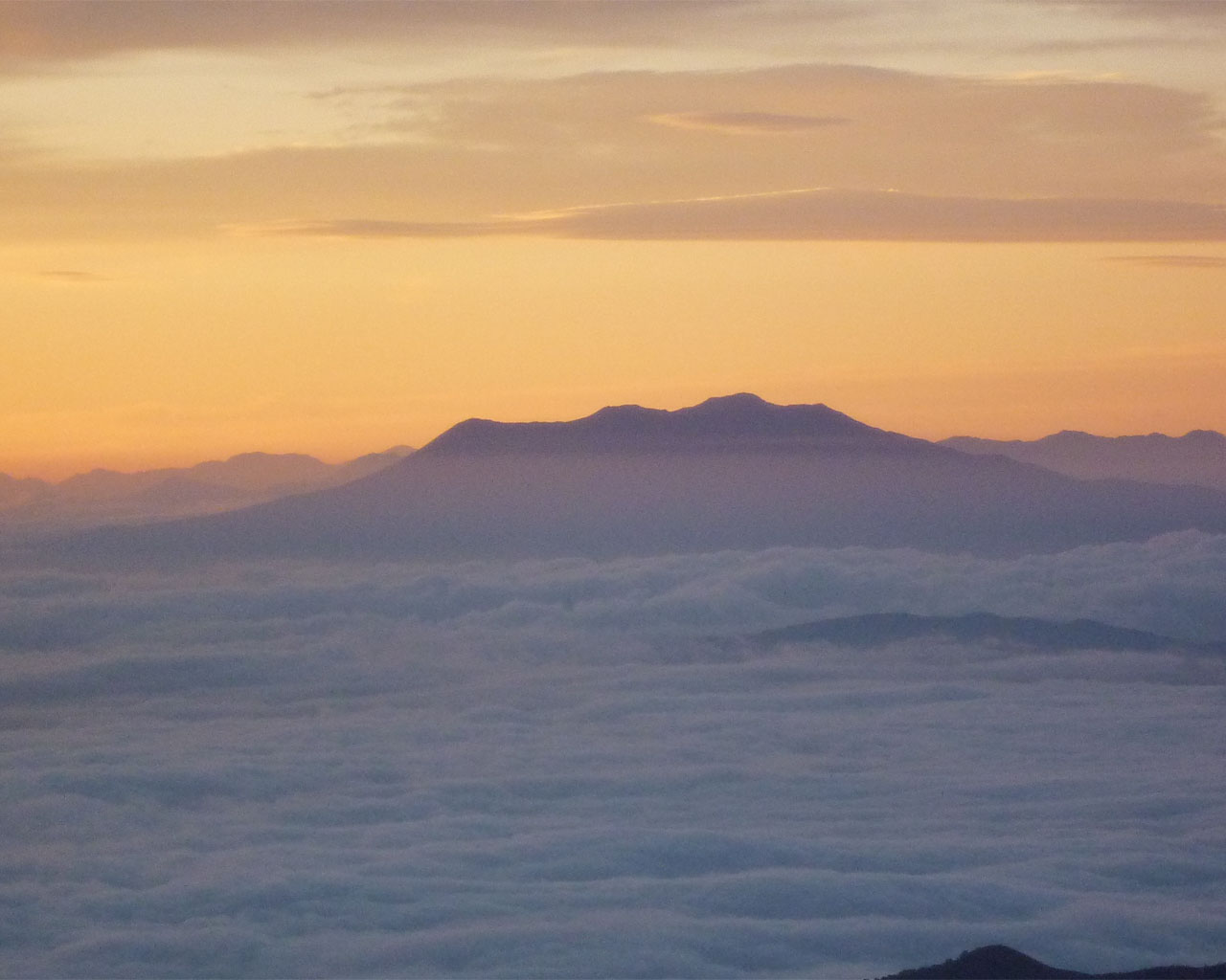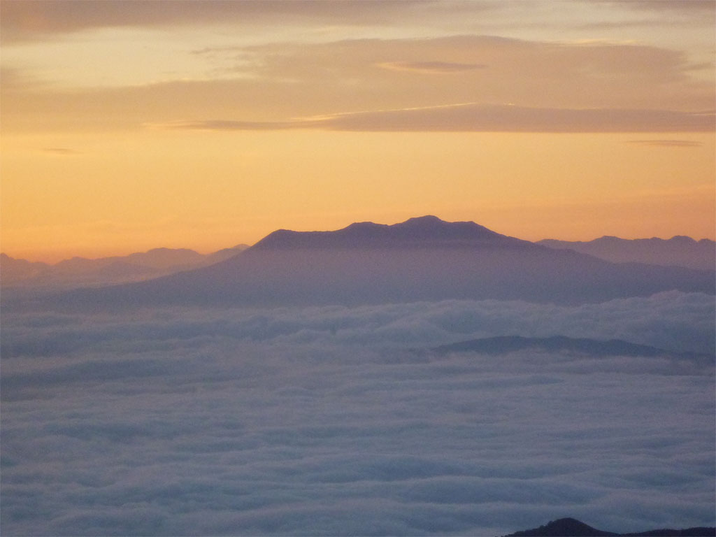 夜明け前の雲海に浮かぶ御嶽山)